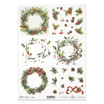 ITD Reispapier Decoupage Bastelpapier Serviettentechnik-R2433 Weihnachtsgirlanden Stechpalme