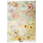 ITD Reispapier Decoupage Bastelpapier Serviettentechnik-R2255 Blumen, Sonnenblumen, Libelle, Schmetterling