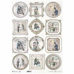 ITD Reispapier Decoupage Bastelpapier A3 Vintage-Rahmen, Figuren, Winterlandschaft R958L