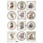 ITD Reispapier Decoupage Bastelpapier A3 Vintage-Rahmen, Figuren, Winterlandschaft R3957L