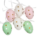 Dekorative Eier am Stab 4x6 cm - 6 Stück - orange, grün, gelb mit Vergoldung