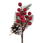 ( Anzahl der Produkte: 80 )Weihnachtszweig mit Tannenzapfen, gefrosteten Weißdornfrüchten und Apfel - 1St