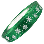 Cremefarbenes Satinband mit Schneeflocken 12mm x 23m