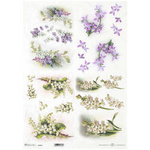 ITD Reispapier Decoupage Bastelpapier A3 Maiglöckchen, weiße Hyazinthen 1033L
