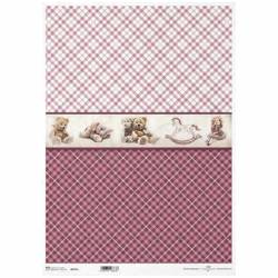 ITD Reispapier für Decoupage - Serviettentechnik A3 0797L rosa Kariert, Spielzeug