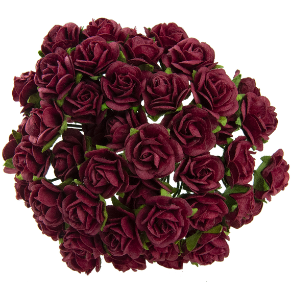 ROSEN Geöffnete 20mm 50 Stk. Scrapbooking Maulbeerpapier Blumen Flowers, burgund