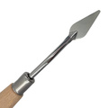 Es hat einen 10 cm langen profilierten Holzgriff und eine 39 x 12 mm große elastische Metallspitze.
