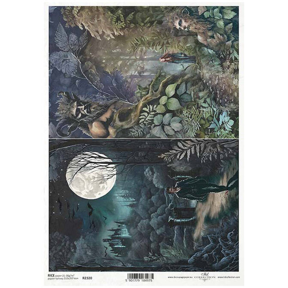 ITD Reispapier Decoupage Bastelpapier Serviettentechnik-R2320 Vampir, Vollmond, Dschungel, geheimnisvoller Wald