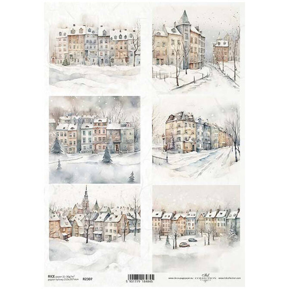 ITD Reispapier Decoupage Bastelpapier Serviettentechnik-R2307 Ansichten, Gebäude, Stadthäuser, Häuser