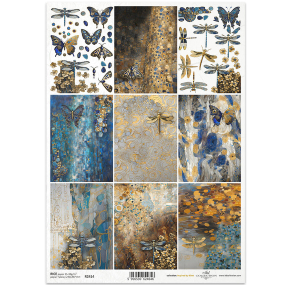 ITD Reispapier Decoupage Bastelpapier Serviettentechnik-R2414 Libelle Schmetterlinge - Inspiriert von Klimt