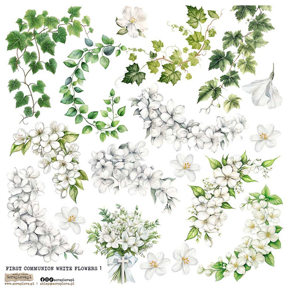 AUFKLEBER ScrapLove Dekor Stickers - First Communion Flowers White 1