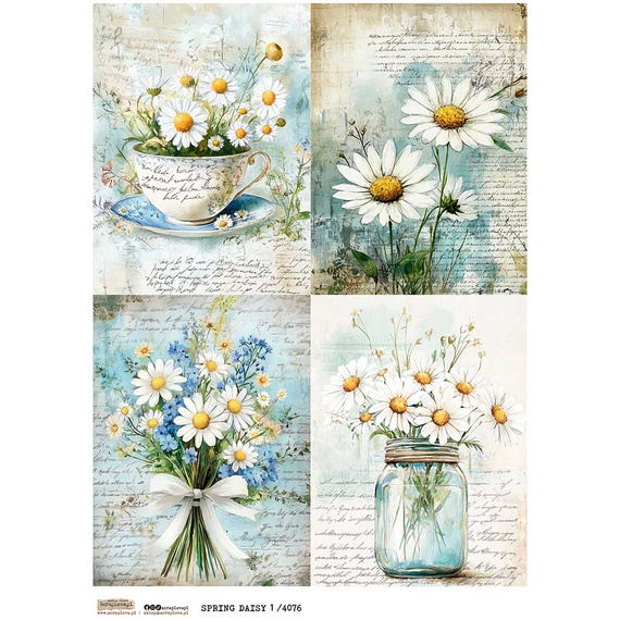 Reispapier Decoupage Bastelpapier A4 - Scraplove - Spring Daisy 1