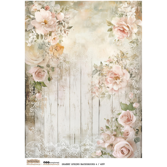 Reispapier Decoupage Bastelpapier A4 - Scraplove - Shabby Spring Background 4