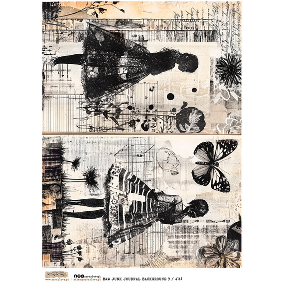 Reispapier Decoupage Bastelpapier A4 - Scraplove - B&W Junk Journal Background 9
