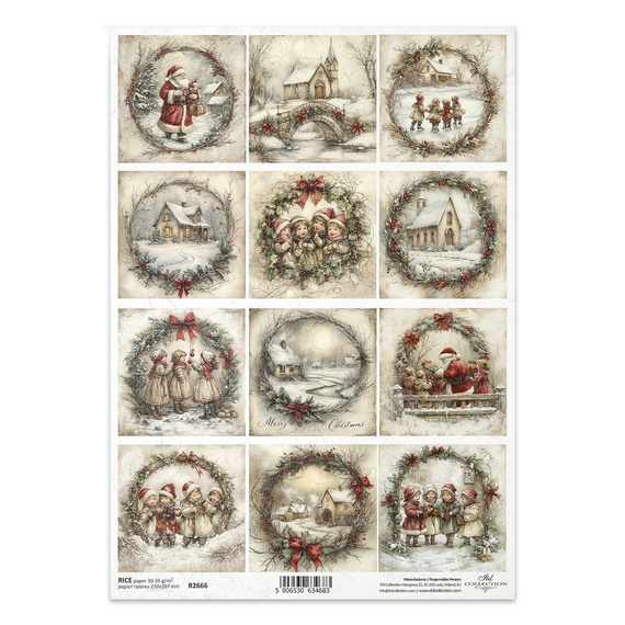 Reispapier für Decoupage A4 - Weihnachtsmann, Kinder, Weihnachten, Winterlandschaft - R2666 - Itd Collection