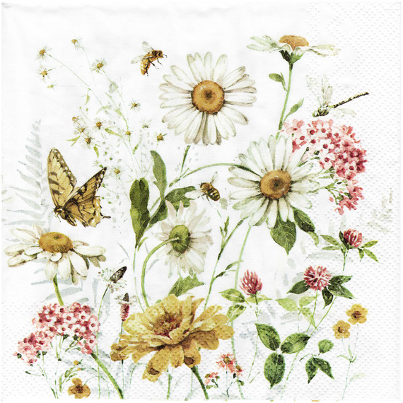 SERVIETTEN 1 Stück Motivservietten Decoupage Napkin 33x33cm, Wildflower and Butterfly