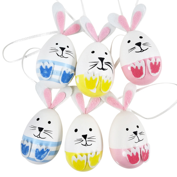 Deko-Eier Hasen 6 cm Ostereier zum Aufhängen 6 Stk. - silber