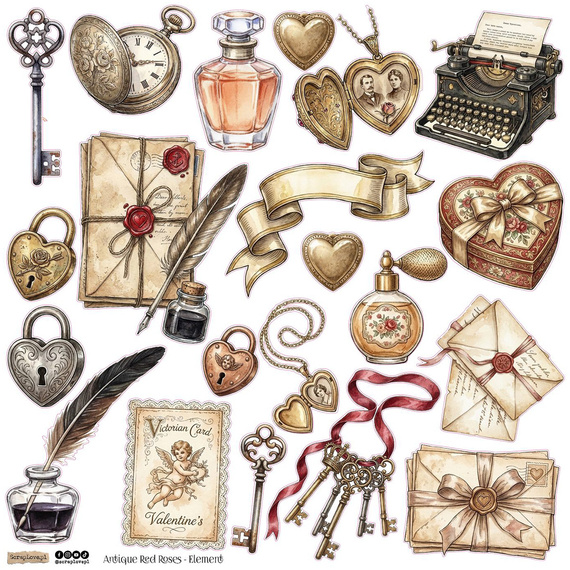 AUFKLEBER ScrapLove Dekor Stickers - Antique Red Roses