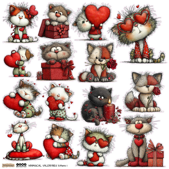 AUFKLEBER ScrapLove Dekor Stickers - Whimsical Valentines Kittens 1