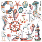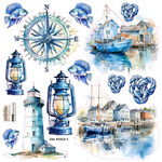 ITD Reispapier Decoupage Bastelpapier, A3 870L Meereselemente, Leuchtturm, Schiff, Reisebriefe