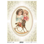 ITD Reispapier Decoupage Bastelpapier, Schaukelpferd, Spitze, dekoratives Oval R1127